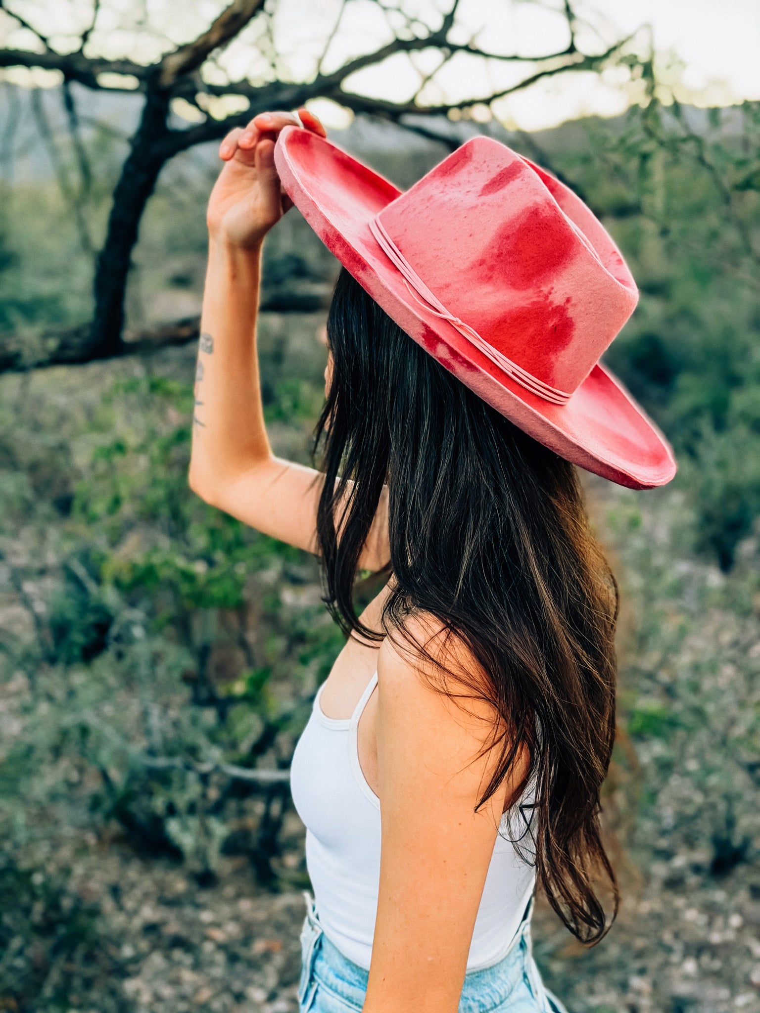 Light pink, each hat has been meticulously dyed by hand using safe, high quality dyes. No two hats are a like, adding to their limited charm. These hats are part whimsy, part vintage feel 🩷 100% Wool - adjustable inner band to accommodate most head sizes.